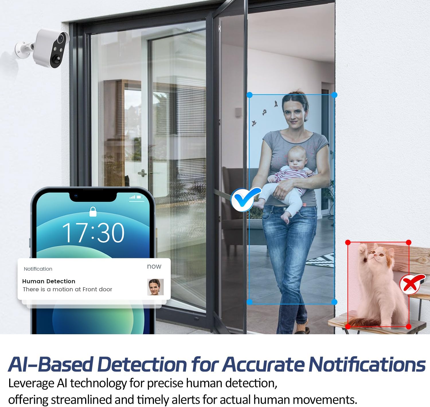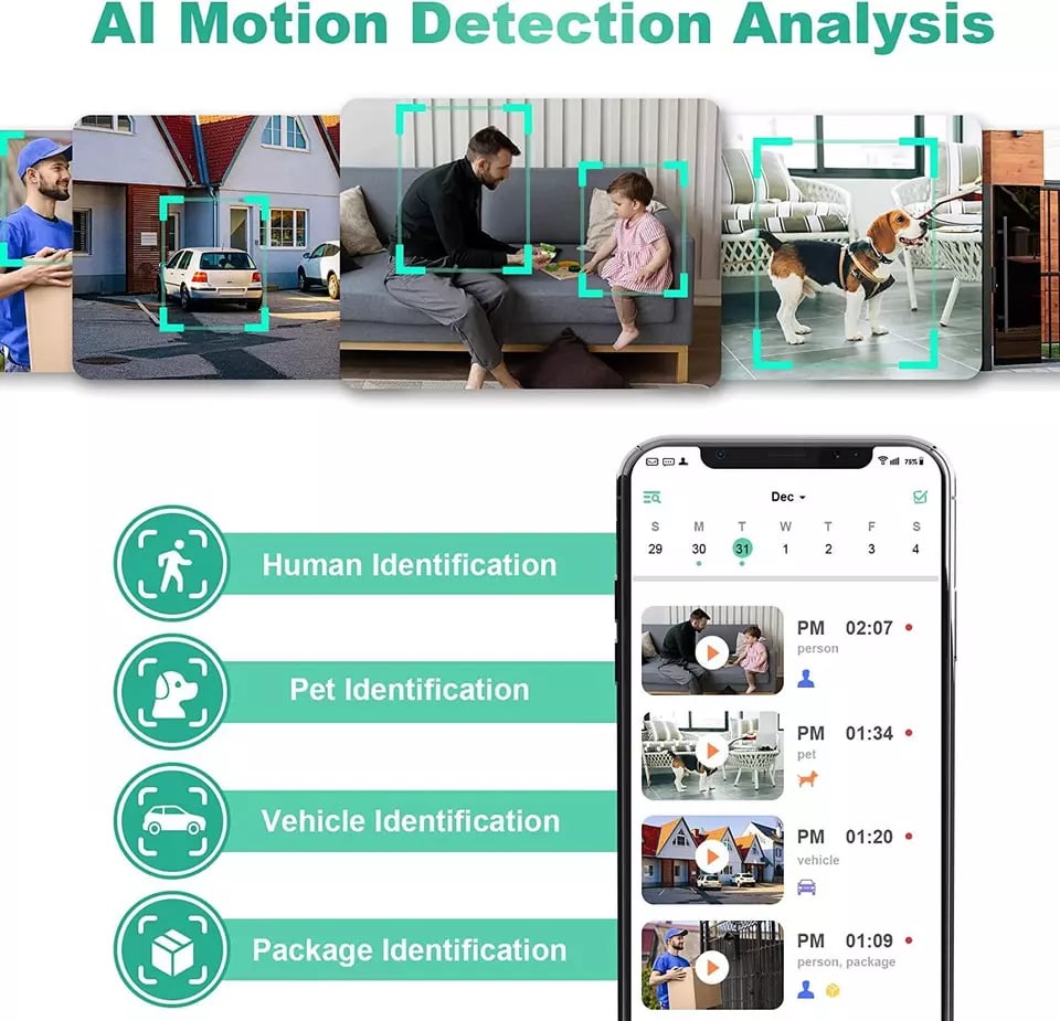 SMART MOTION ACTIVATED SECURITY CAMERA - Elevate your home security with XCAVE home surveillance camera outdoor security cameras for home featuring advanced AI Analysis. Featuring advanced motion detection technology, our wireless camera outdoor WiFi cameras without subscription not only detect motion but also analyze it in real time. Invest in our home camera outdoor wireless surveillance cameras for home security outdoor wireless WiFi to ensure your home is intelligently protected.
