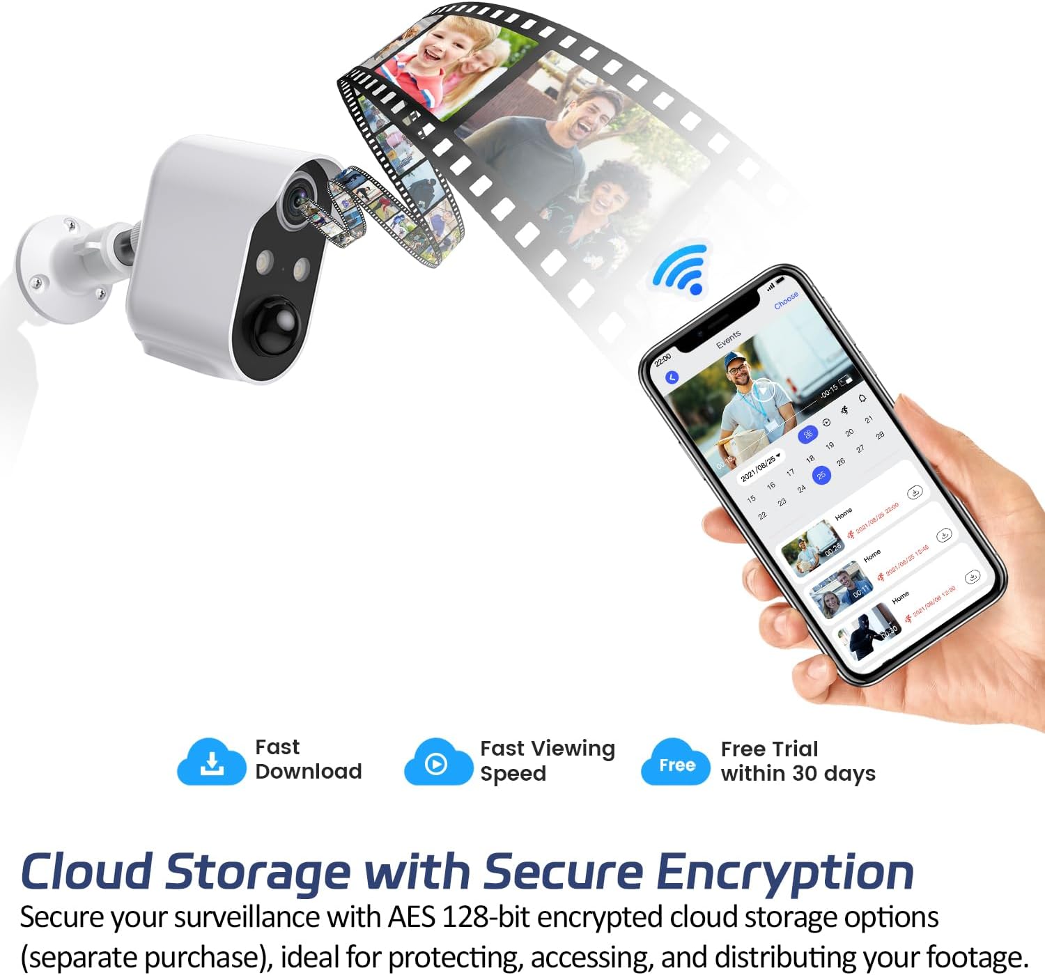 3-DAY ROLLING CLOUD STORAGE SECURITY CAMERA - Automatically save the last three days of video footage with our no subscription security camera with SD card storage outdoor wireless WiFi. With our wireless home security cameras wireless outdoor camera no subscription, you can stay connected and secure. Enjoy the ease of cloud storage with our non subscription security camera. XCAVE home cameras indoor and outdoor wireless cameras for home security are compatible with SD card (not included).