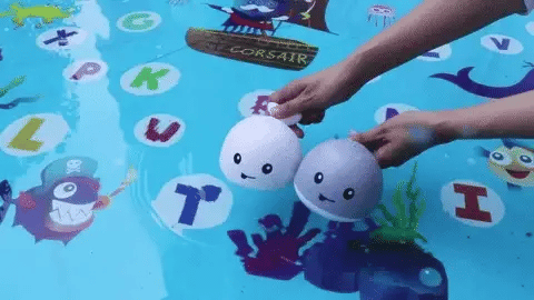 ✔️ Enhances strength and agility- The Bath Toys help with the development of gross motor skills and core control as your little one follows it through the water.