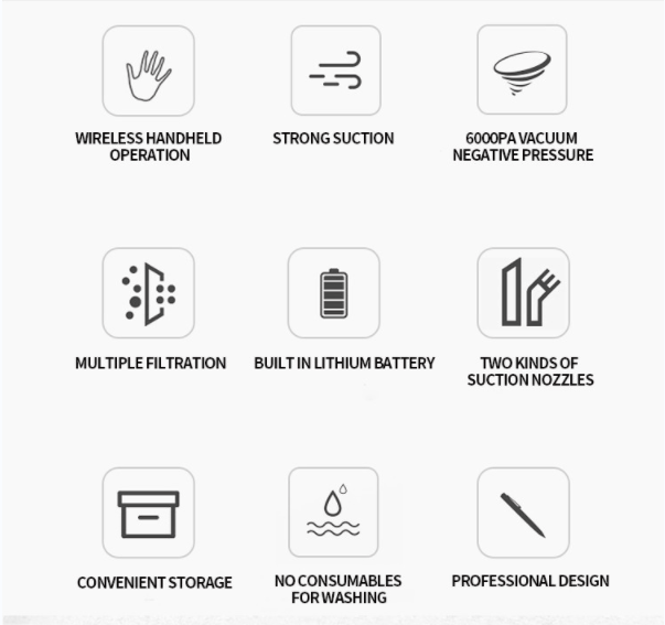 • 【Wireless Rechargeable】 USB rechargeable, built-in 1200Amh batteries, motor speed up to 9000PM/35500RPM, fast charging technology,  It can give you about 15-20 minutes of continuous working time , which is enough to cope to most areas of your home/office/car.
