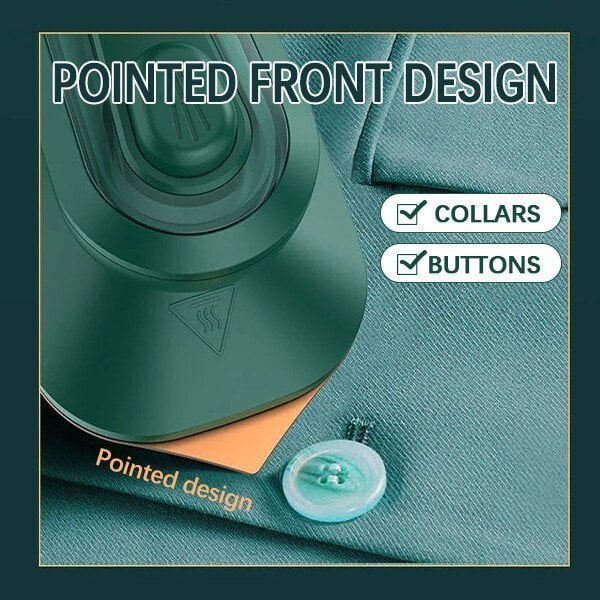 - [Fixed corners] The hand-held household steam iron board adopts a triangular pointed front design, which can flexibly iron narrow areas such as buttons, plackets, and collars, and elegantly display details. [Applicable to all fabrics] Every piece of fabric during travel needs to be ironed, such as organic fabrics, nylon blends, wool, cotton, linen, etc. This portable mini ironing machine can effectively remove creases and wrinkles from clothes with steam. It is not suitable for heavy clothes.